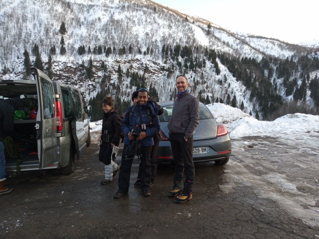 Une petite démonstration de fonctionnement DVA-sonde-pelle à l’intérieur et hop ! direction Celliers, direction la neige…