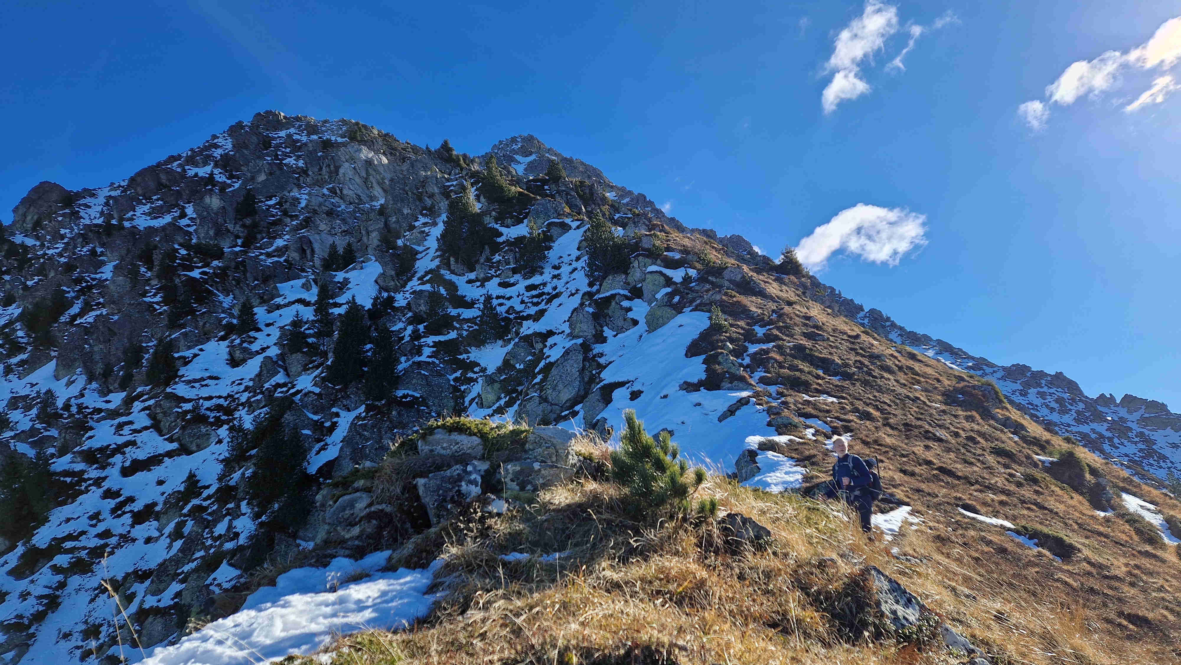 Il y a déjà bon nombre d’années, nous avions, avec Pascal — l'ancien président du club — effectué une randonnée aux Grands Moulins, en passant à la montée par l'arête nord-ouest. C'est en pensant à Pascal, et à son incroyable aptitude à nous créer de formidables galères (il adorait cela), que j'ai repensé aux Grands Moulins. Une randonnée en novembre, avec la quasi-certitude de rencontrer des névés, des chemins glacés… Bref, tout à fait dans l'esprit de Pascal.