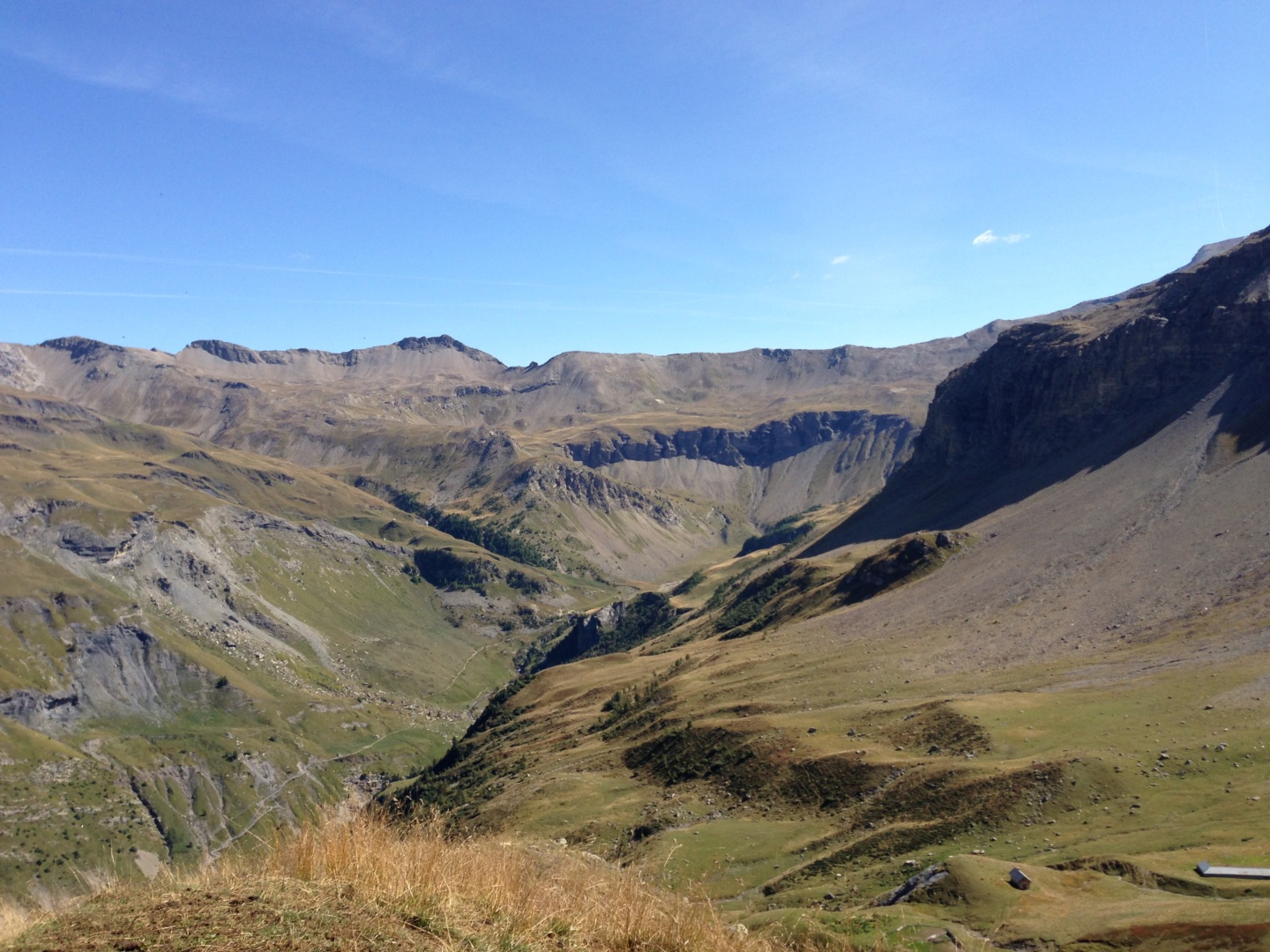 Descente en empruntant la rive droite du vallon pour rejoindre le sentier de montée vers 2100m d'altitude.