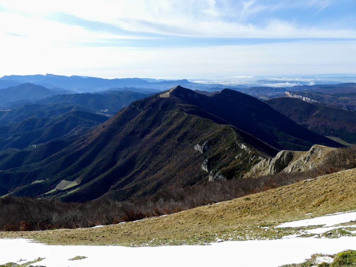 Belle vue sur les sommets du Vercors (Grand Veymond...) sur le Diois et le Devoluy.