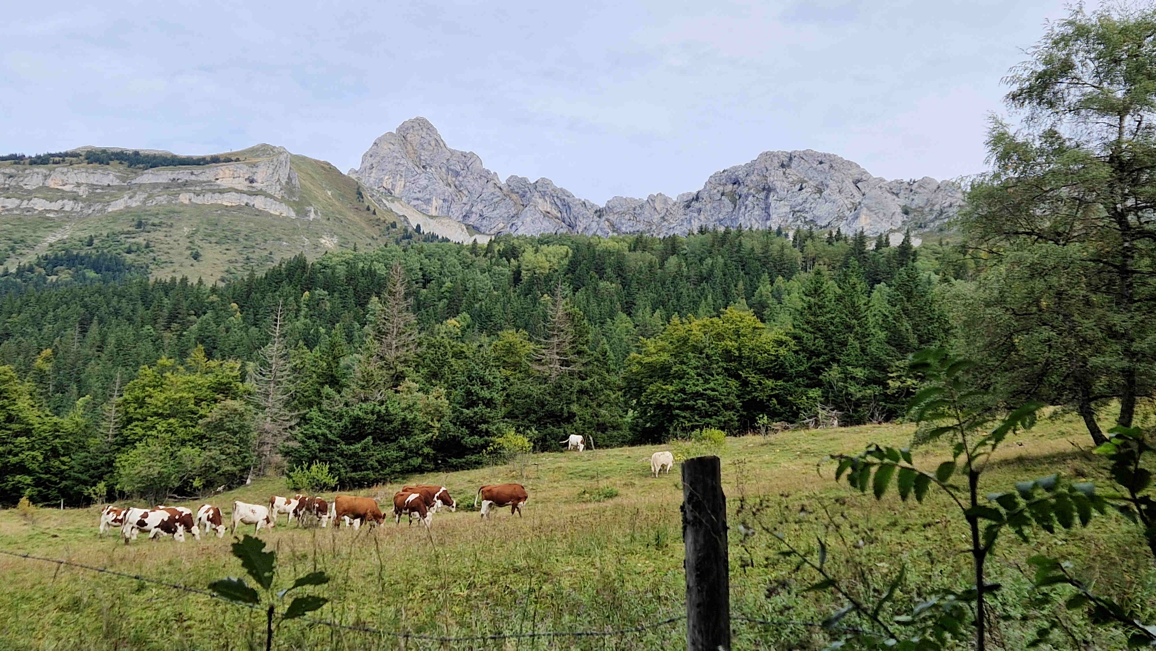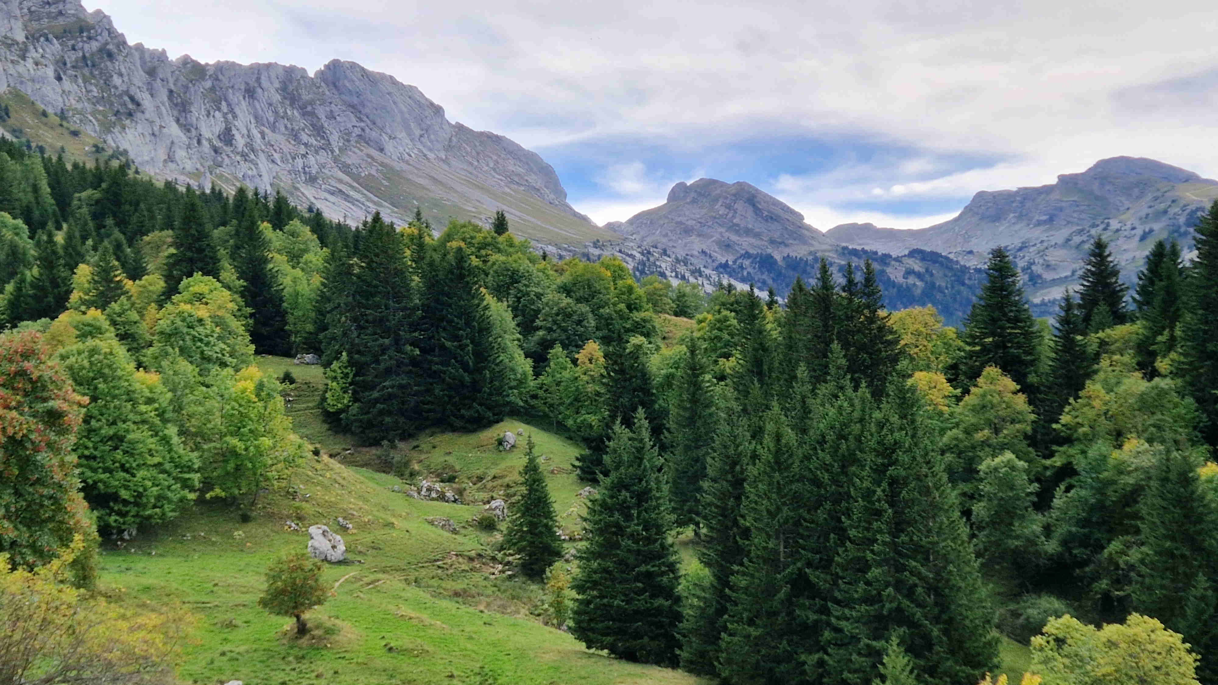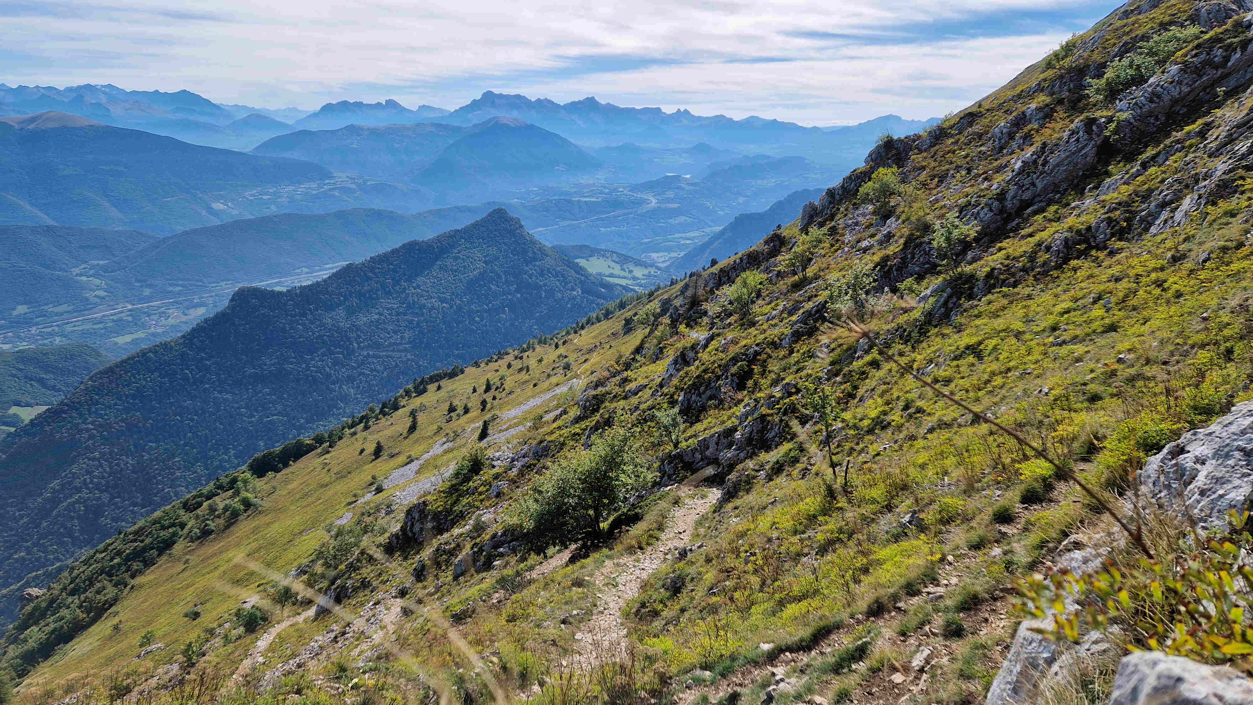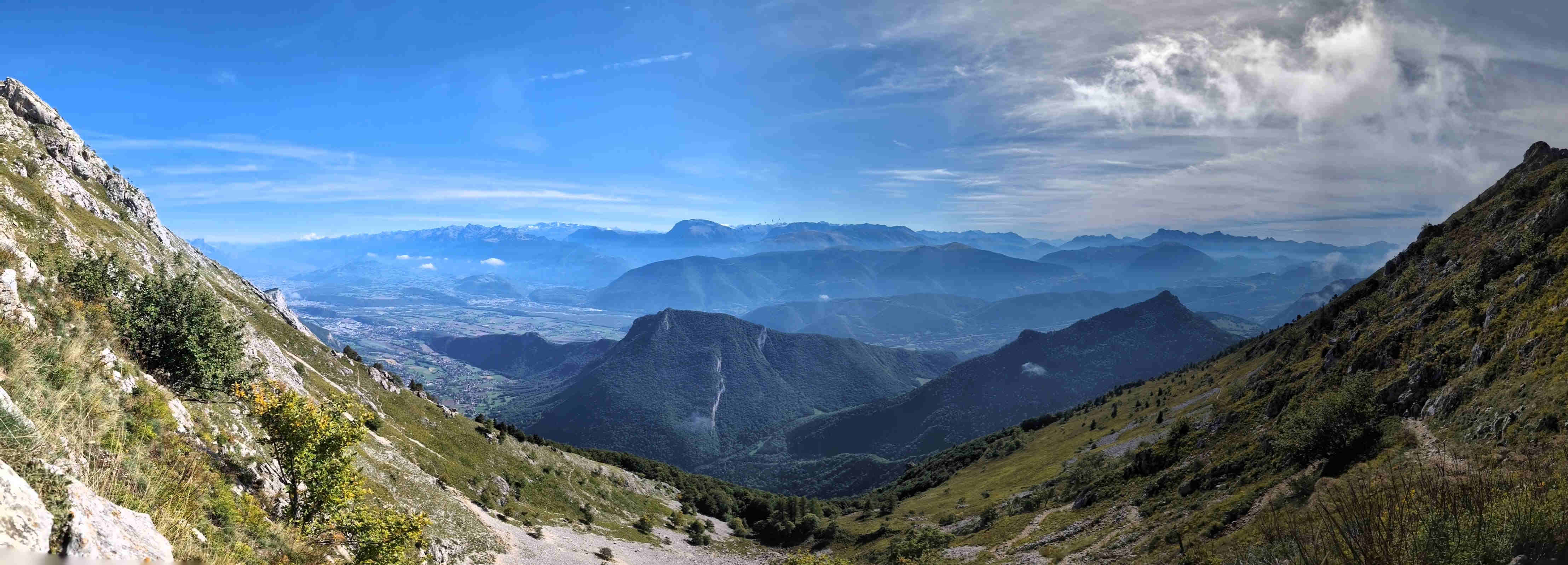 Belle journée d'automne avec belle vue au col vert sur les Alpes et les vallées du Drac et de l'Isère.