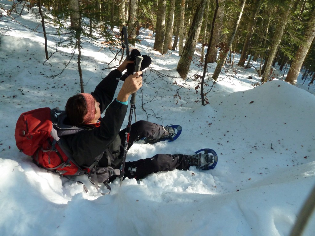 La météo était idéale : grand soleil, pas un nuage et si la température affichait -11°C c'était un froid sec et sans vent. La neige n'était pas encore bien présente en ce début de mois de décembre, c'est sans importance pour une ballade en raquettes. Nous les avons chaussées dès le parking, et après un petit tour pour ce mettre en jambe nous avons rejoint le Refuge de Gève au bord des pistes de ski de fond ... et de la route dégagée par les chasse-neige. Un petit crochet par le chemin des thures et un retour « hors-piste » avec quelques galipettes dans la neige tellement bonne, à se rouler dedans. Les habitués du club (Guislaine, Julien, Michel, Yves, Pascal) et les nouvelles arrivées en ont bien profitées : bienvenue à Pauline et Anna.